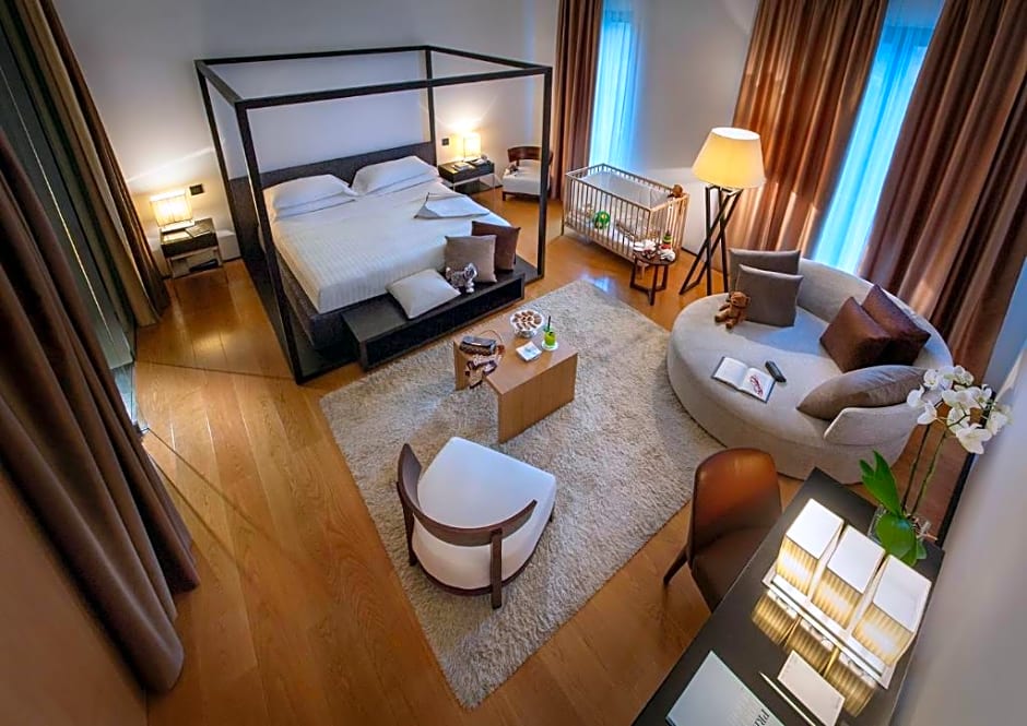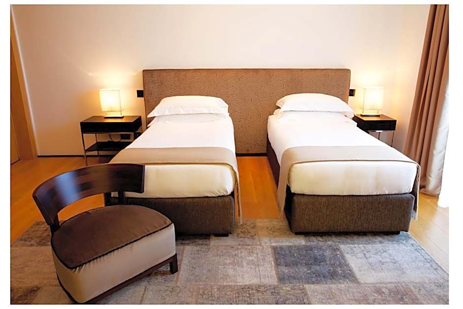 Elegant, air-conditioned room with free WiFi, a flat-screen TV with satellite channels, and parquet floors. Includes a marble handy bathroom with a walk-in shower. This room cannot accommodate baby cots or extra beds. Twin beds are available upon request.